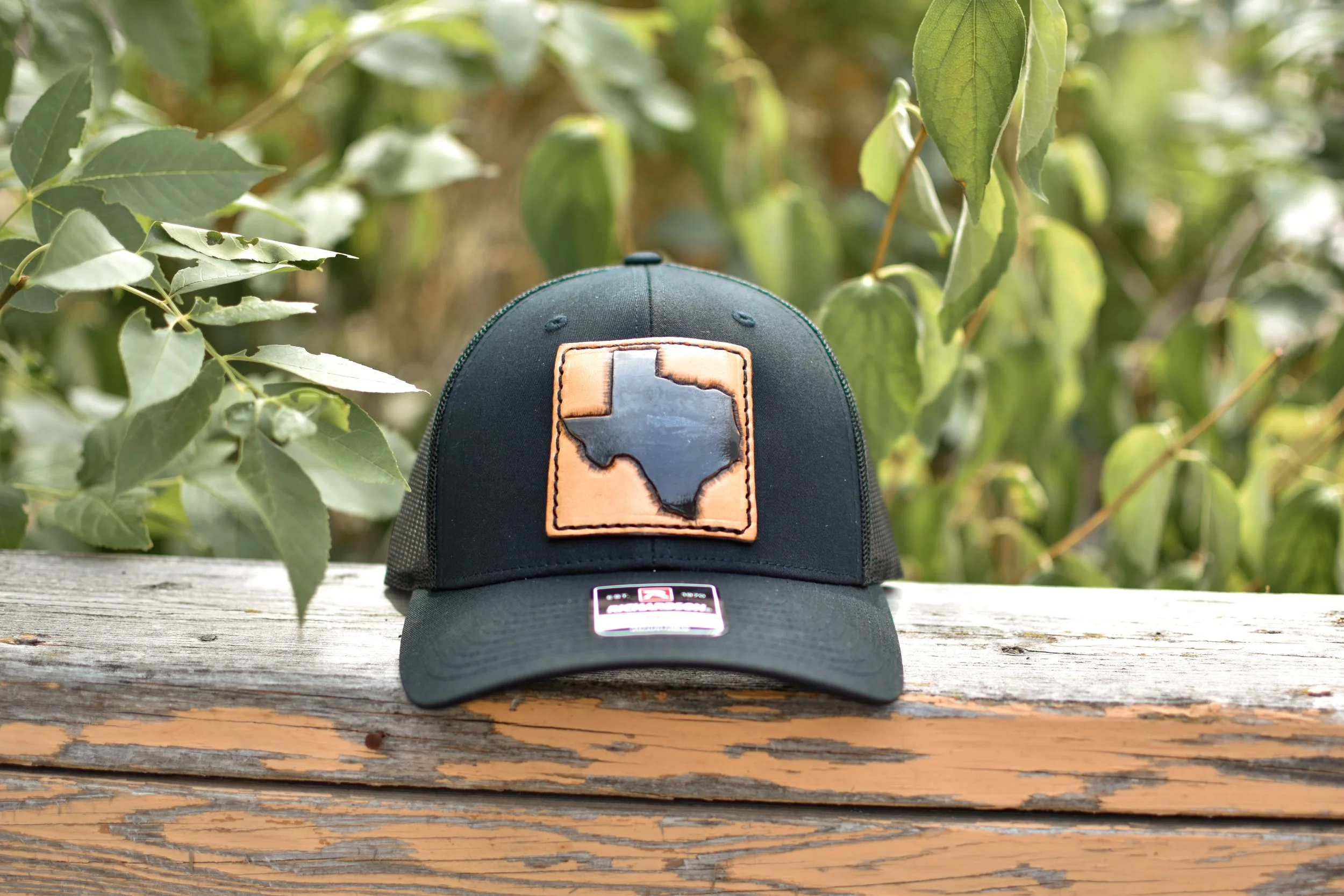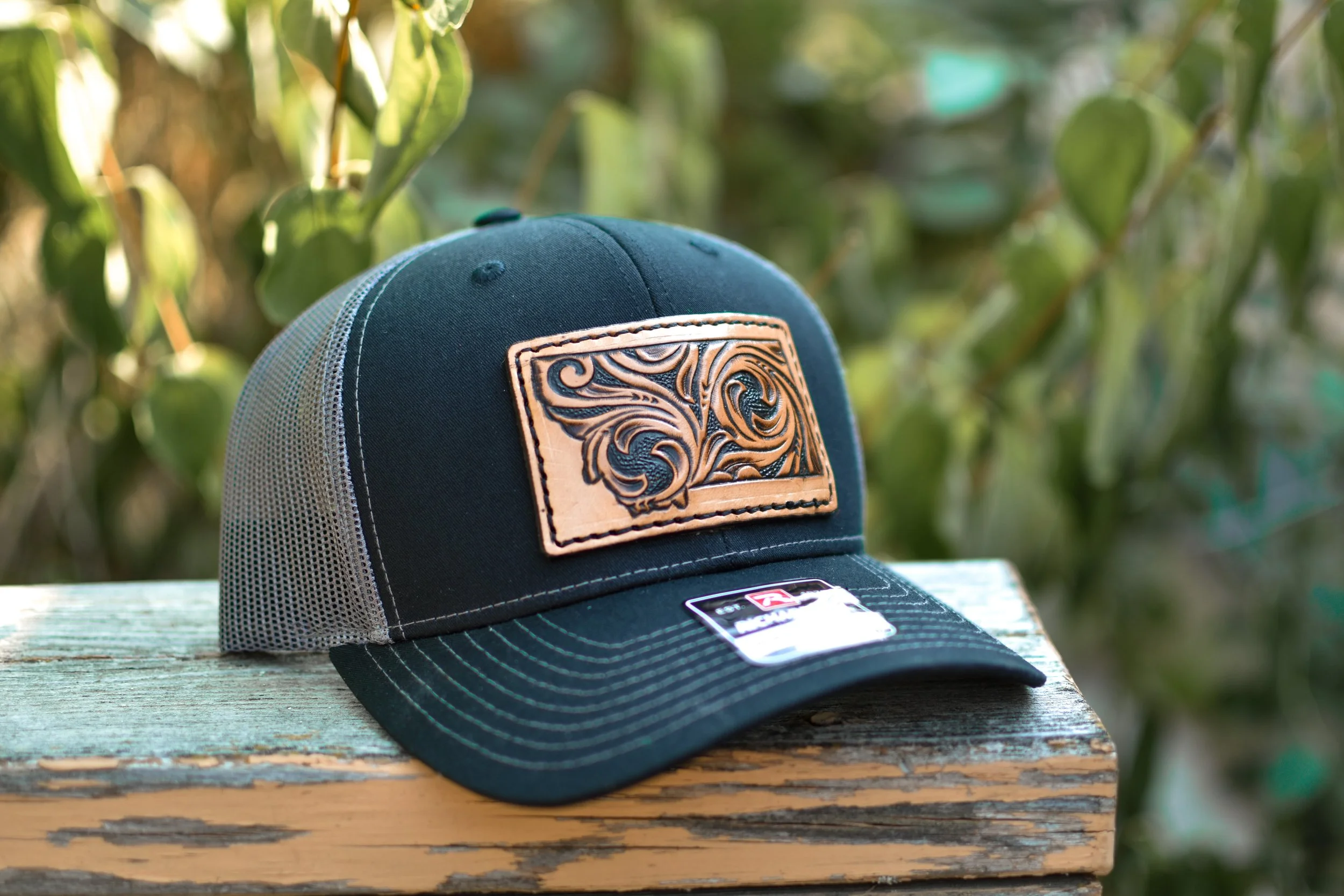 Leather patches on Richardson 112 - snapback trucker style ball caps.
